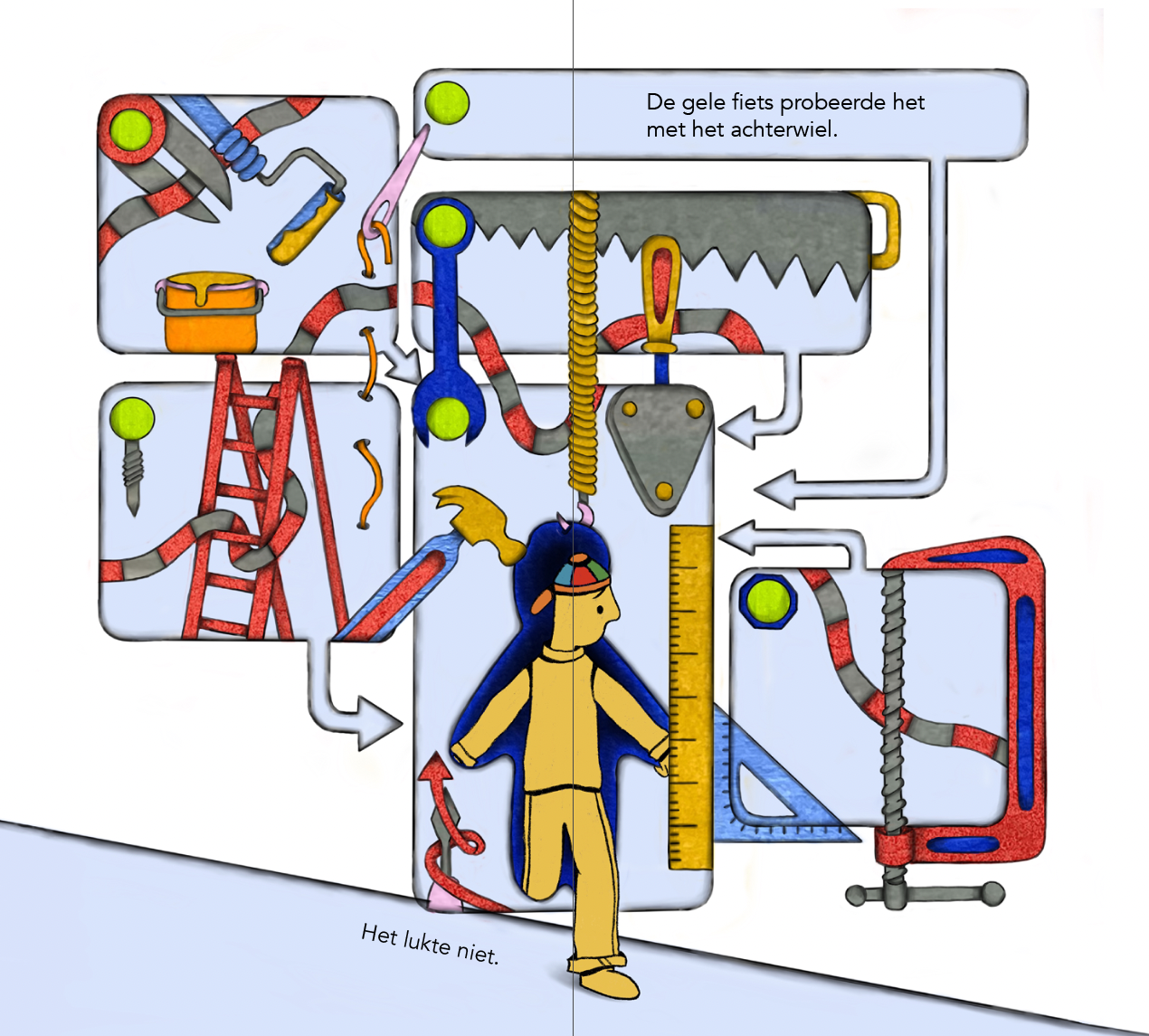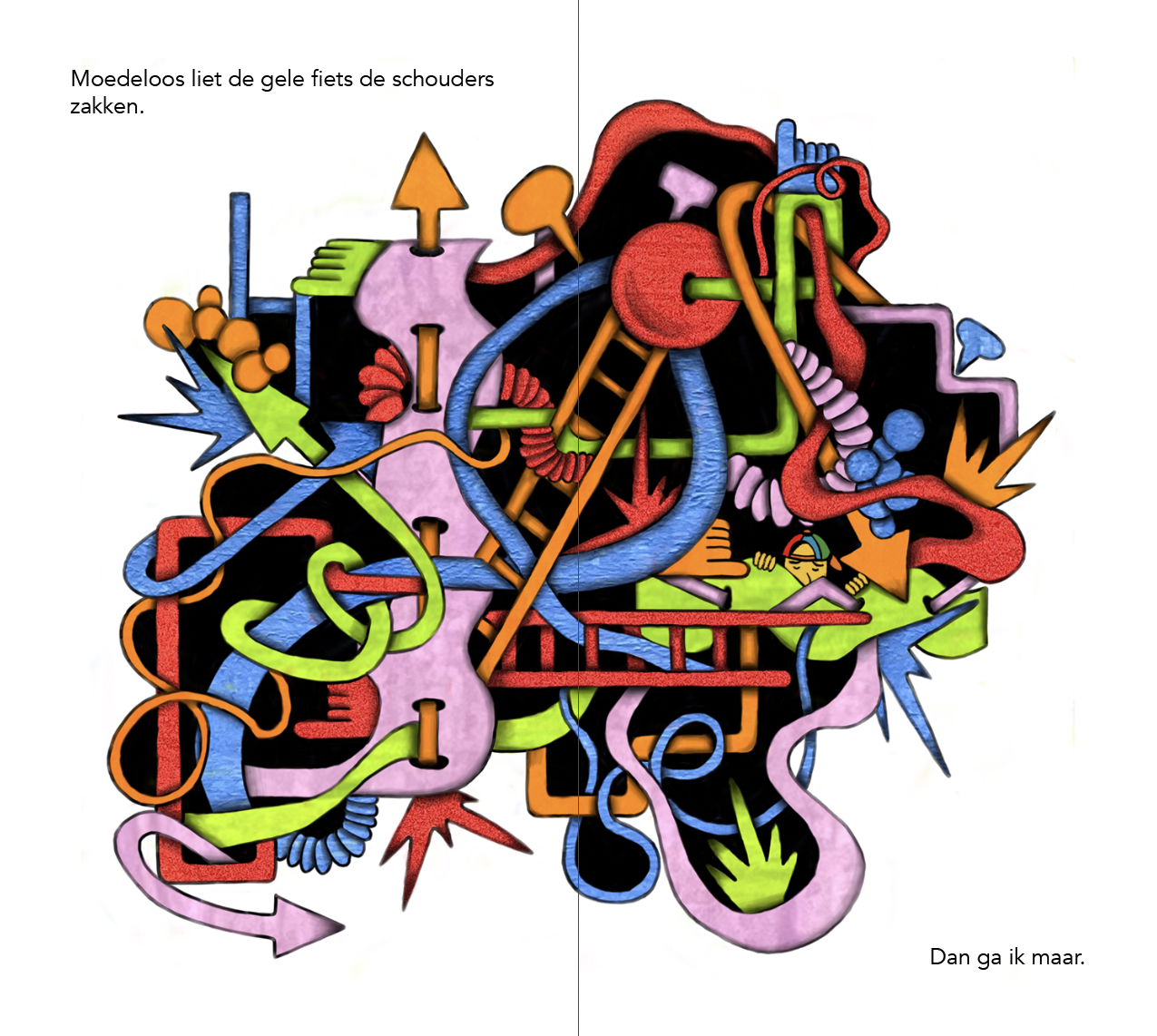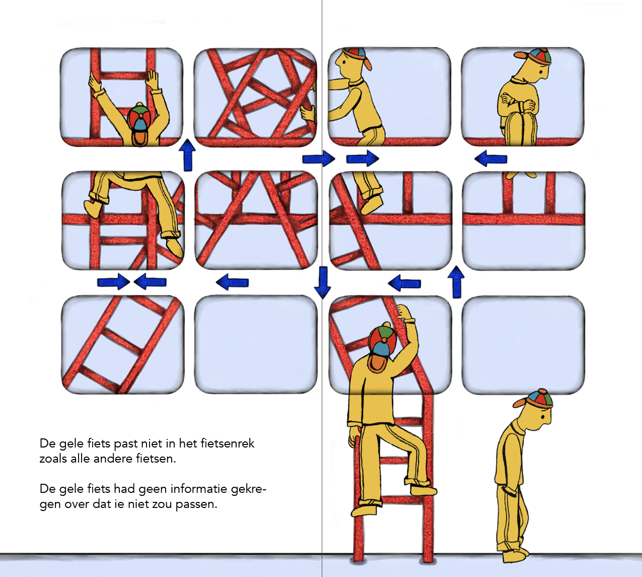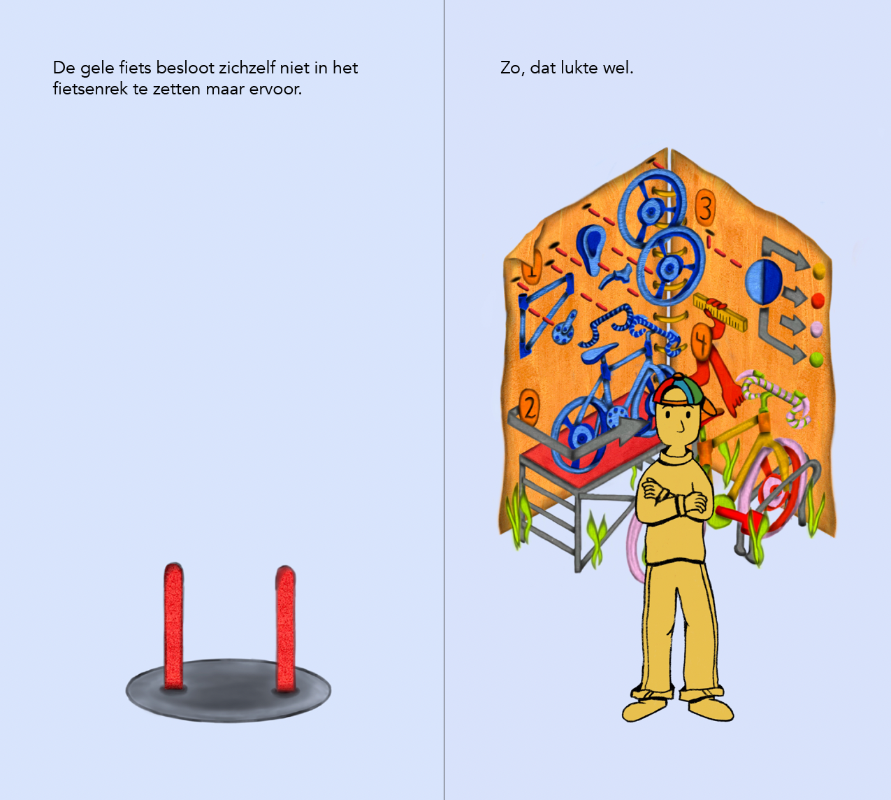 In het boekje De Gele Fiets gaat het over je er niet bij voelen horen. Omdat je niet voldoet aan de heersende norm. Of dit nu heteronormativiteit is, verwachtingen rond rollenpatronen of genderpresentatie. Wanneer je niet aan de norm voldoet, lijkt het alsof je er niet bij hoort en het kost tijd om je te realiseren dat het dan niet werkt om je aan te passen om er toch bij te horen.